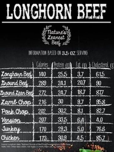 Check out the Longhorn Beef stats compared to other forms of meat, the results are amazing!